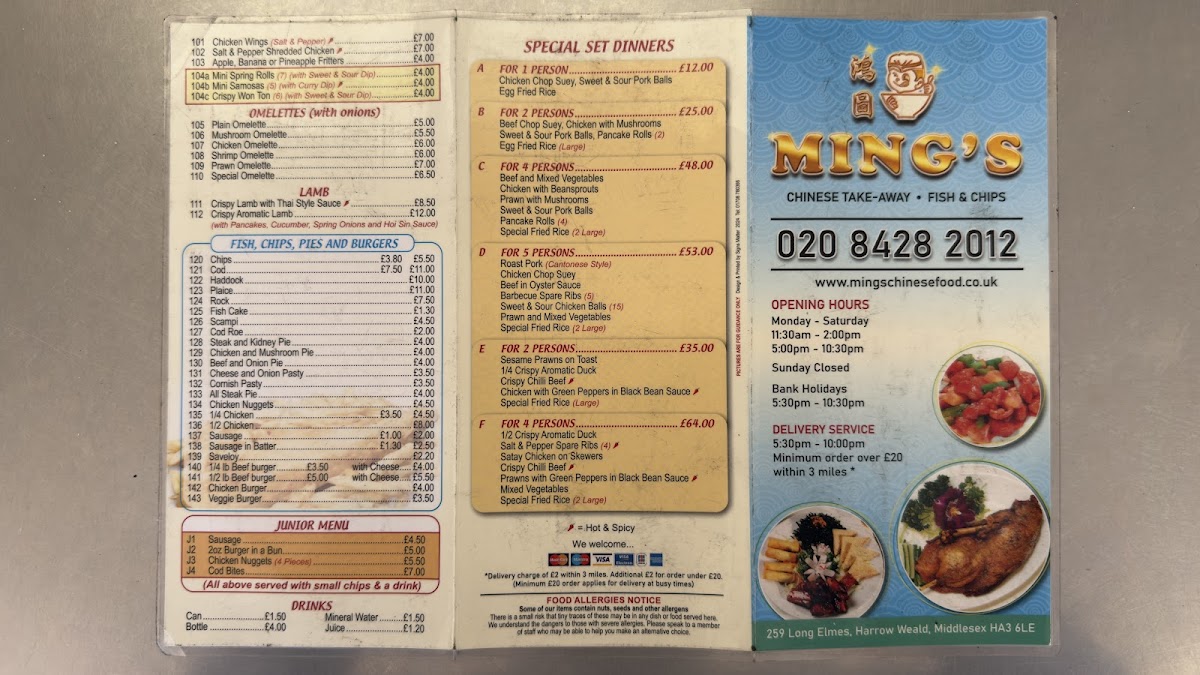 Welcome to Ming's, a beloved culinary gem located at 259 Long Elmes, Harrow. With nearly 30 years of service, Ming's is renowned for its delightful fusion of Chinese cuisine and classic fish and chips that draws in families and food enthusiasts alike.